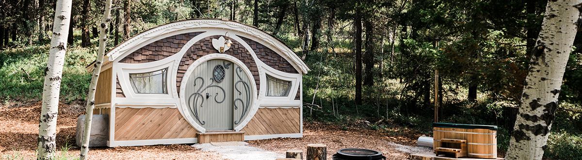 One of the most unique new cottage resorts in Alberta, Charmed Family Resorts offers a selection of whimsical camping cottages in the Crowsnest Pass. The resort was conceived, designed, and built by Tyson and Audy Leavitt of Charmed Playhouses, a company that builds luxury playhouses for wealthy and famous clients. The pair also has a popular show on TLC called Playhouse Masters.